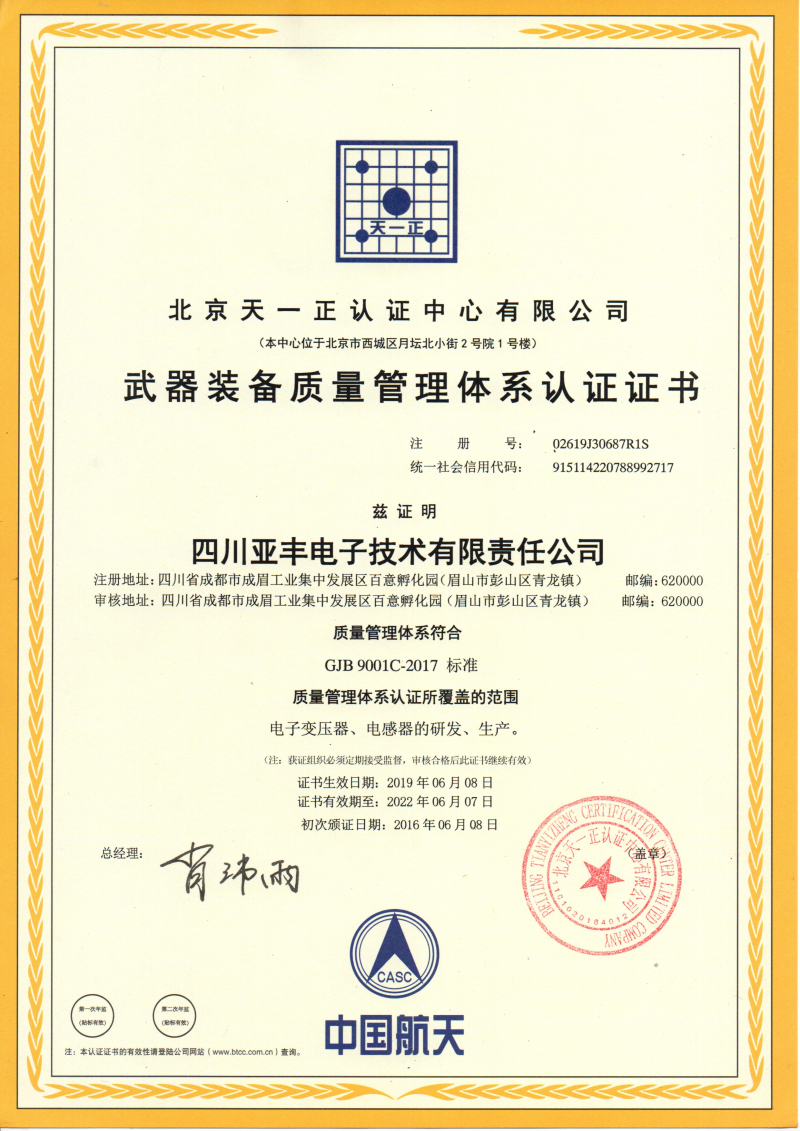 6月5日至6日,亞豐電子順利通過國軍標質量管理體系2019年度監督暨換版現場審核。